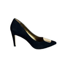 Zapatos Abierto Mujer Prune Negro Detalle dorado en parte delantera taco aguja planta dorada 39 Uschi